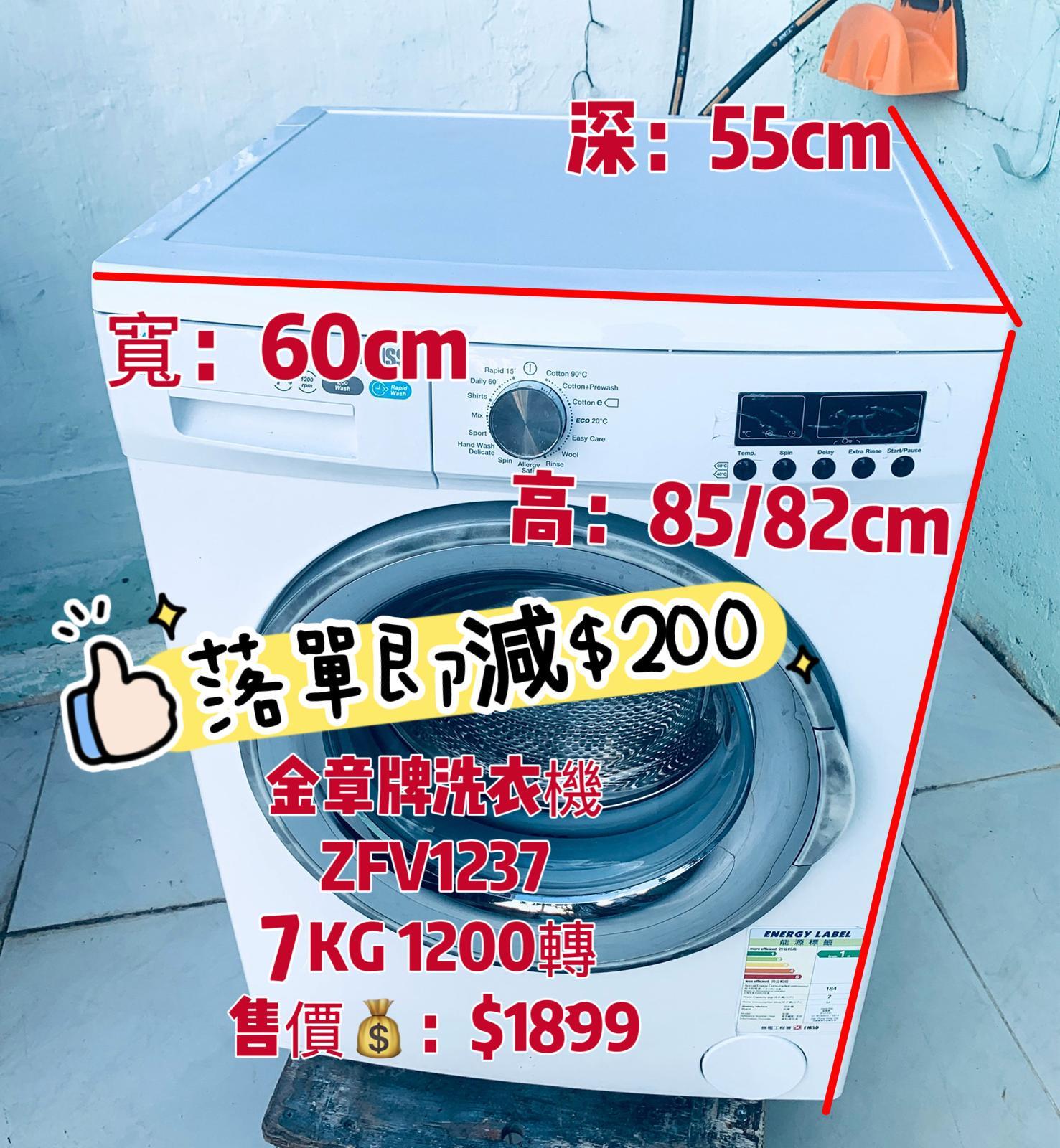 洗衣機♻️落單即減$200♻️ Zanussi 金章 前置式 (7kg, 1200轉/分鐘) ZFV1237 二手電器 貨到付款 包送貨安裝